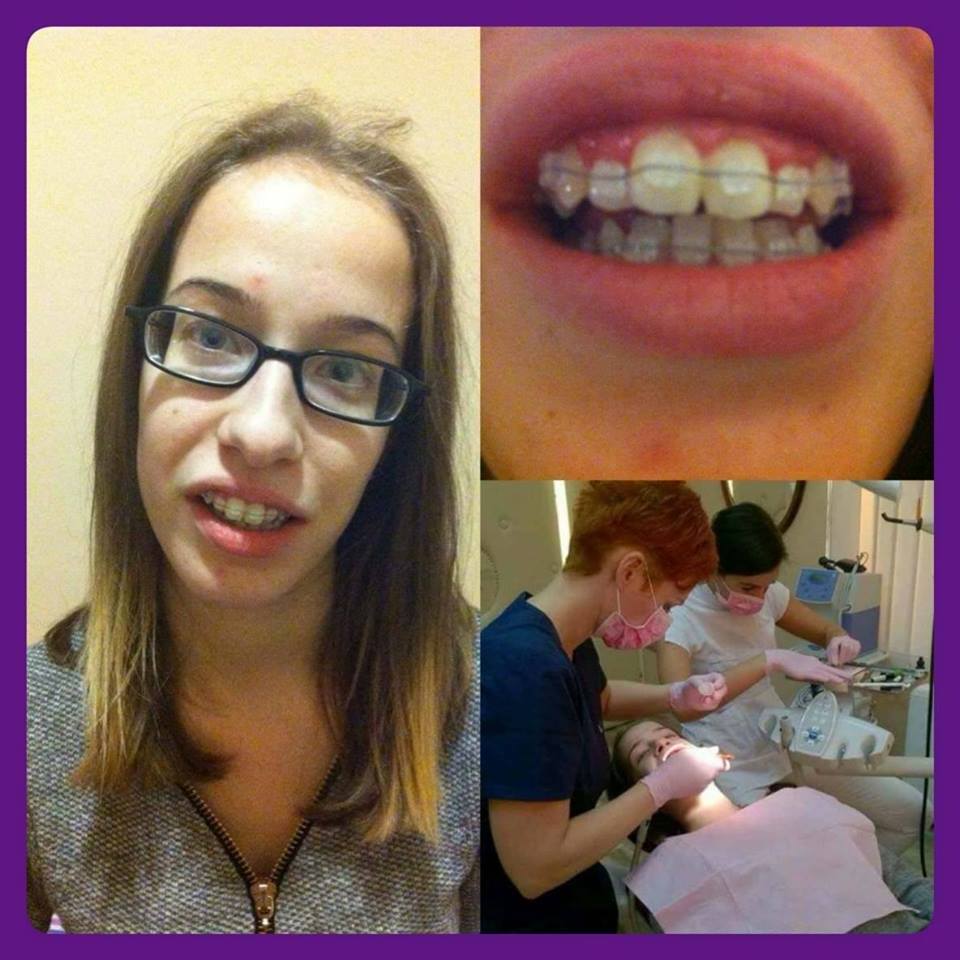 A rendelőben szólt a zene, a zsibbadtságtól nem éreztem semmit, kellemesen feküdtem a hátra döntött orvosi székben, már csak egy talpmasszázs és egy finom koktél hiányzott a teljes wellness élményhez. :D A felragasztott brekettekhez egy tűfogú olló segítségével gumigyűrűkkel rögzítették a fogszabályozó íveket (na